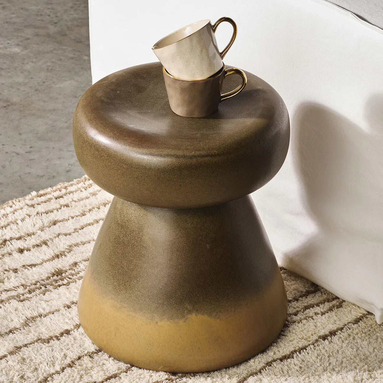 These divine Ariel mugs have been handmade and glazed in a reactive glaze and gilded with gold around the rim and the handle.
