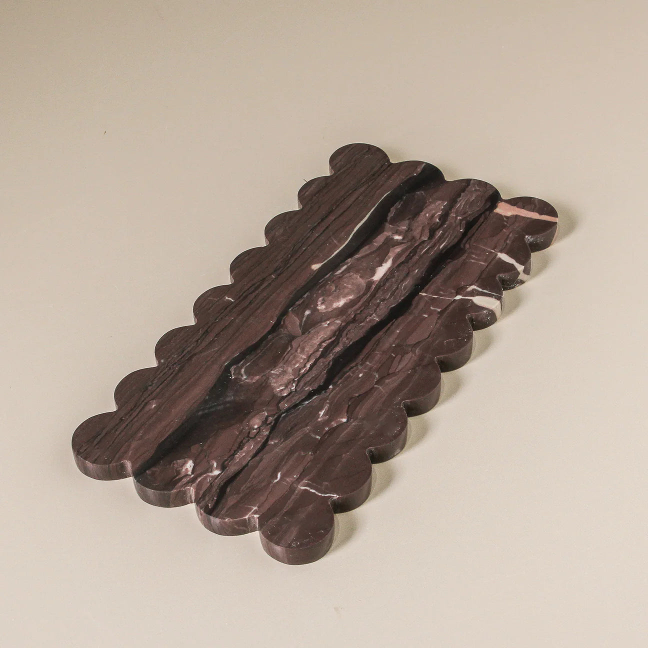 The Chloe Cheeseboard is a celebration of artisanal craft and natural beauty, designed for those who appreciate subtle elegance in everyday moments. This flat, rectangular marble board features gently scalloped edges that soften its silhouette, offering a tactile and elevated platform for serving cheese, charcuterie, or styling your tabletop.